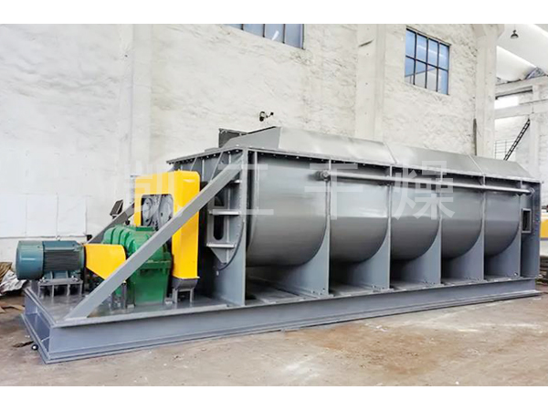印染污泥干燥機是一種以熱傳導為主的臥式攪拌型干燥機。設備干燥時所需熱量是依靠熱傳導間接加熱,因此干燥過程只需少量的氣體以帶走濕分,這就極大地減少了被氣體帶走的這部分熱量的損耗,提高了熱量的利用率,整個干燥過程在封閉狀態下進行,有機揮發氣體及異味氣體在密封氛圍下送至尾氣處理裝置,避免環境污染,所以該設備是一種環保節能型干燥設備,并已得到環保部門的認可。